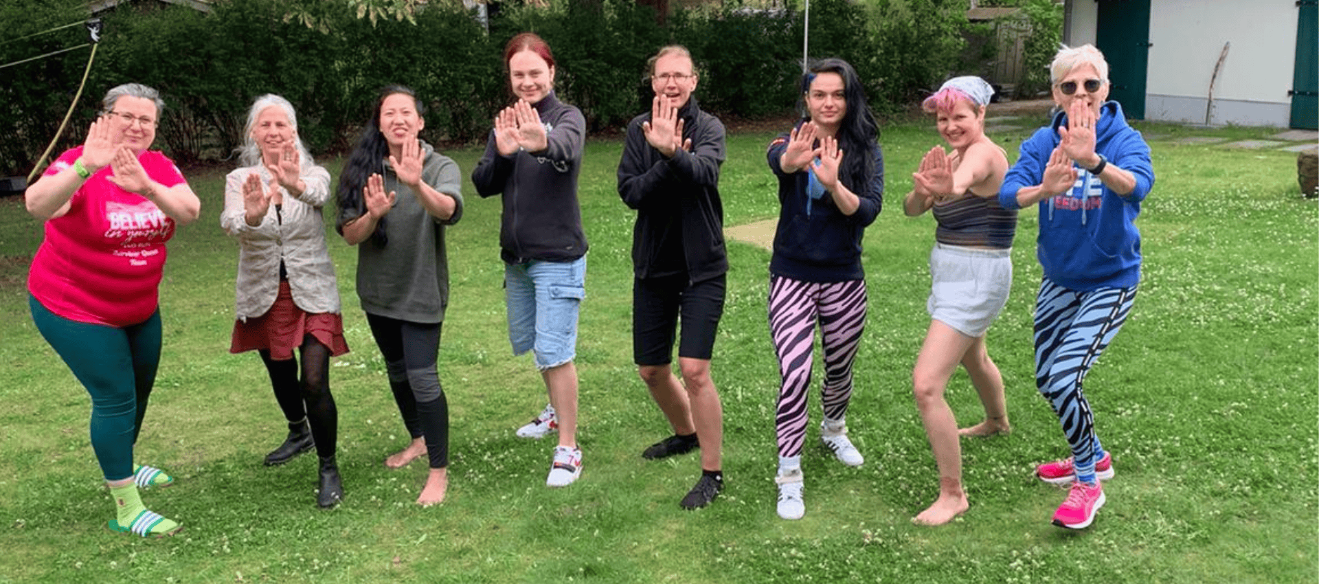 Grundsätzlich versuchen wir den Kurs so inklusive wie möglich zu gestalten und Übungen auch abzuwandeln – soweit möglich. Wir haben auch schon Teilnehmemer*innen im Rollstuhl dabei gehabt.